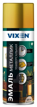 Быстросохнущая акриловая эмаль VIXEN с эффектом «металлик». Предназначена для окрашивания предварительно загрунтованных металлических, деревянных, стеклянных и прочих поверхностей. Образует металлизированное покрытие, придает окрашенному изделию эффектный декоративный внешний вид.
